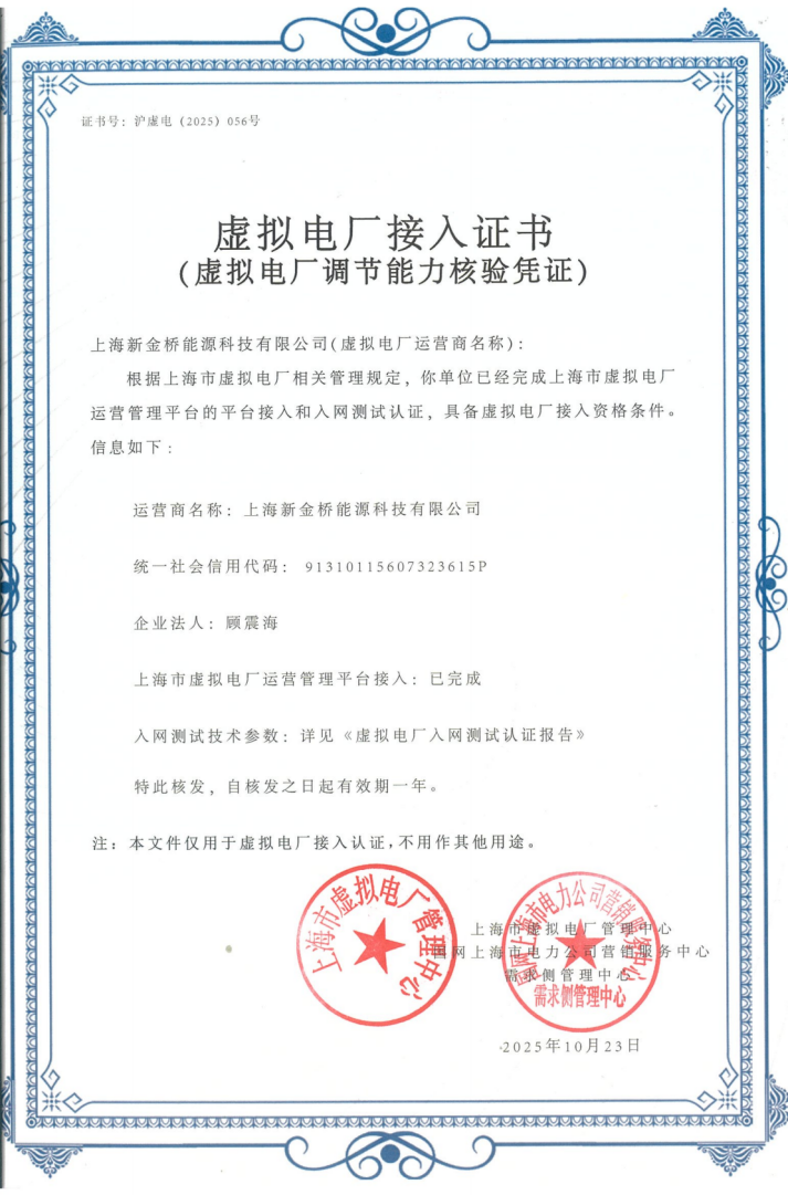 近日,上海新金桥能源科技有限公司顺利通过上海市负荷管理中心及电力交易中心技术准入,成功获得“虚拟电厂运营商资质”,成为上海市第56家虚拟电厂运营商。这一里程碑式成果的达成,得益于新金桥能源与千瓦科技彼此在技术方案与资质申报环节的紧密配合和专业努力。