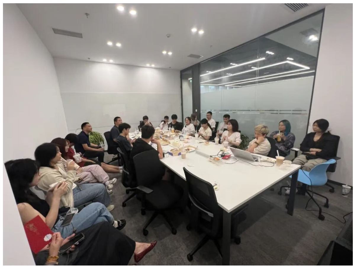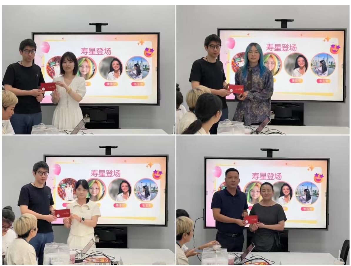 临近 9 月底,月度生日会也如期而至。活动现场提前布置妥当:奶茶披萨排排放在桌子上,香甜的奶油蛋糕摆在C位,旁边还放着为寿星们准备的贺卡,仪式感拉满。随着 “生日快乐” 歌响起,九月寿星们围站在蛋糕旁,闭眼许下心愿,共同吹灭蜡烛。